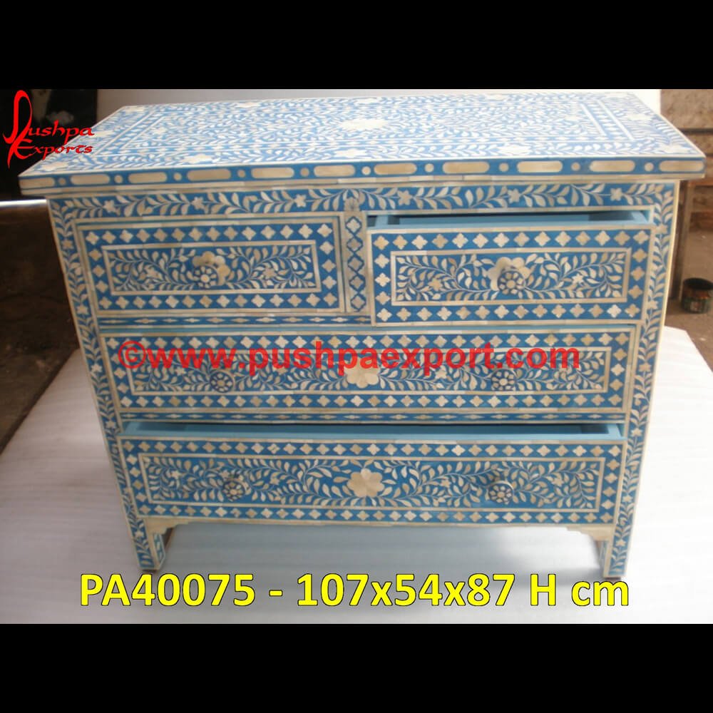 • The Sky Blue Bone Inlay Chest of Drawers seem to be quite elegant.