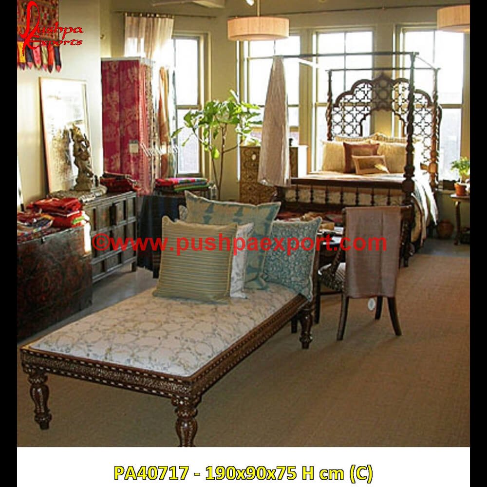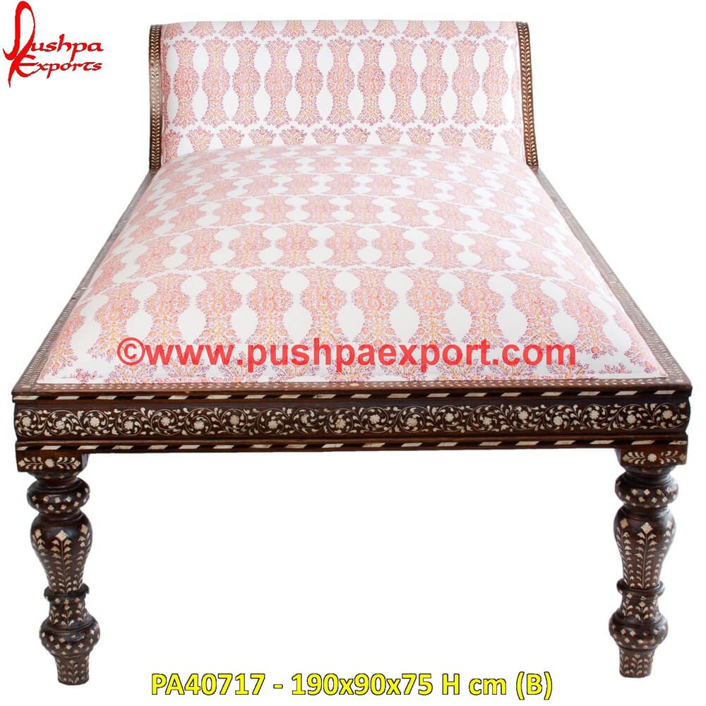 Bone inlay lounger have thousands of designs to choose from―including floral, geometric, honeycomb, stripes, and many more patterns―in striking colors. Cushions made of luxurious fabrics such as velvet and silk are used to decorate bone lounger. Bone lounger is made with lion’s patterned legs.