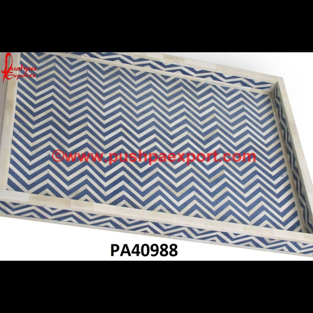 • The Chevron Bone Inlay Tray In Blue seems to be quite elegant.