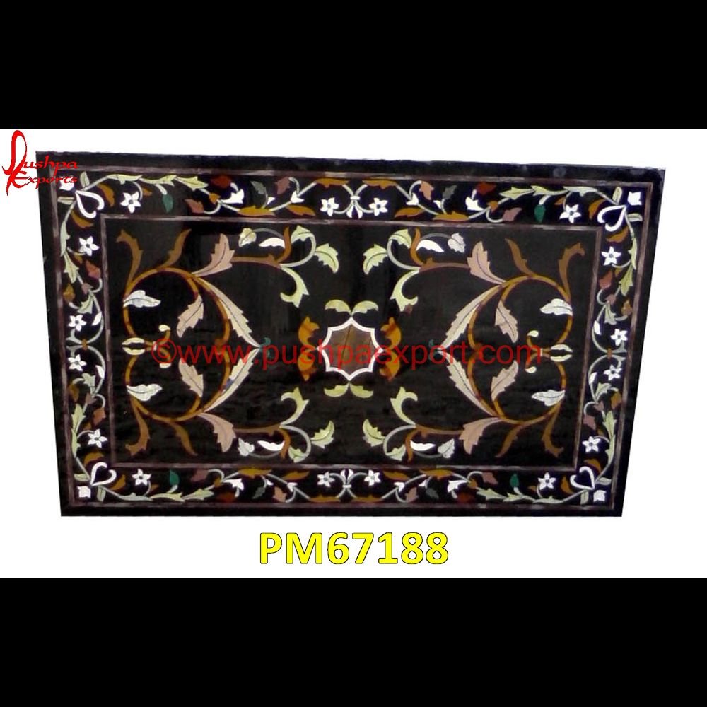 Modern Floral Inlay Black Marble Table Top Description