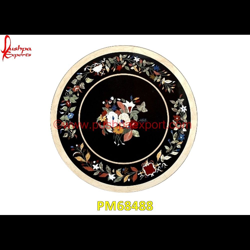 • On the carved Black Marble Round Table Top With Floral Inlay Work, one can have inlaid mother-of-pearl or semiprecious stonework.