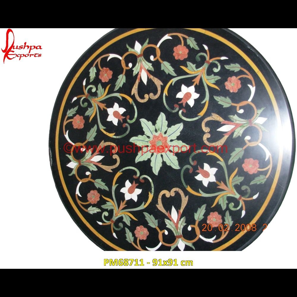 Special Features Of Inlay Round Black Marble Stone Tea Table Top