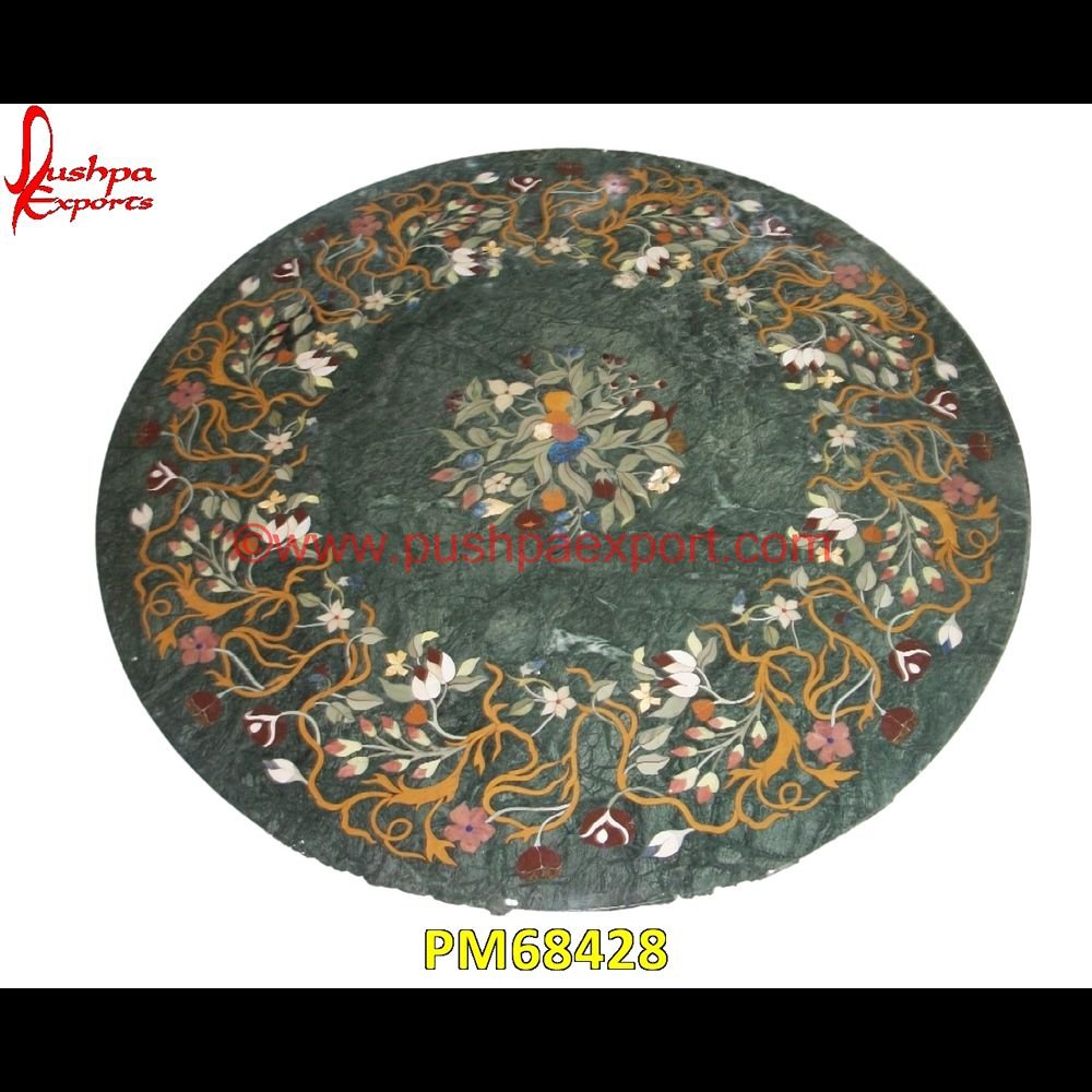 • On the carved Round Green Marble Floral Pietra Dura Table Top, one can have inlaid mother-of-pearl or semiprecious stonework.