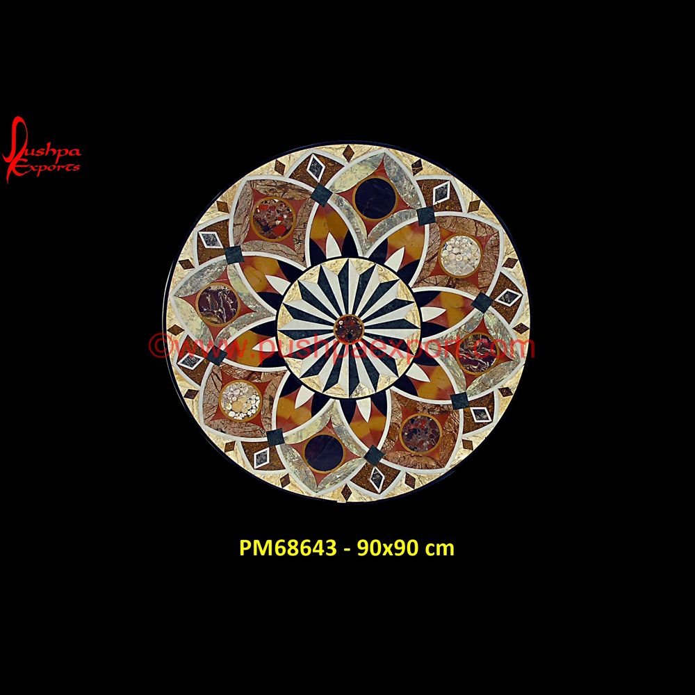 Stone Overlay Round Italian Marble Stone Table Top can be used both in indoor and outdoor spaces.