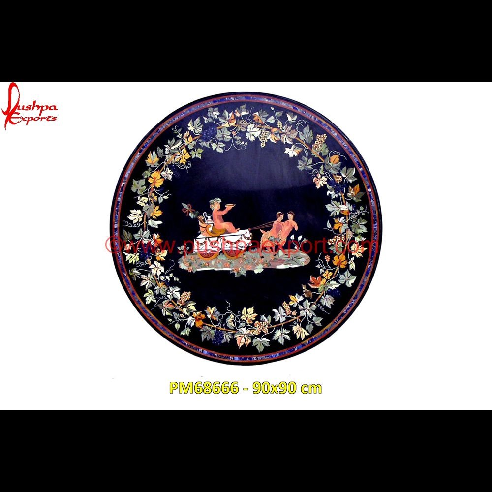• On the carved Tiny Art Inlay Round Marble Table Top, one can have inlaid mother-of-pearl or semiprecious stonework.