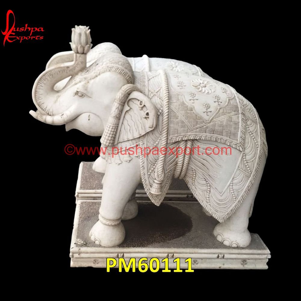 • On the carved Antique Finish White Marble Elephant Statue, you can have inlaid mother-of-pearl or semiprecious stone work.