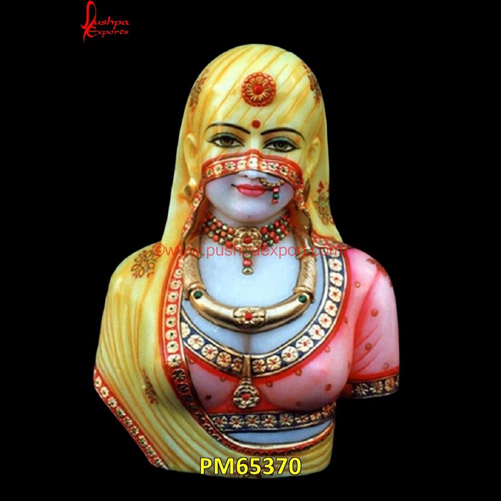 The veiled lady sculpture or marble bust of woman statue is definitely magnificent. The lady with veil sculpture is one of our famous statues. The marble bust veiled lady depicts a beautiful woman with a veil on her face. The marble sculpture veiled lady is carved in such a manner that, it makes one feel that the face of the veiled lady sculpture is cover by a transparent fabric but it is all made in marble. The veiled lady sculpture looks like the woman is trying to see through the fabric but in reality, there is no fabric. The veiled lady sculpture is completely made in stone. We also make the same figure in Rajasthani style showing a Rajasthani lady wearing ghunghat, who is well known as Bani Thani.