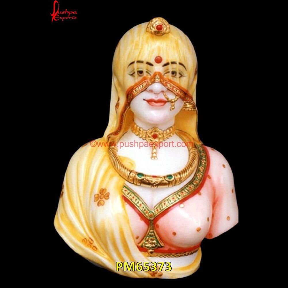The veiled lady sculpture or marble bust of woman statue is definitely magnificent. The lady with veil sculpture is one of our famous statues. The marble bust veiled lady depicts a beautiful woman with a veil on her face. The marble sculpture veiled lady is carved in such a manner that, it makes one feel that the face of the veiled lady sculpture is cover by a transparent fabric but it is all made in marble. The veiled lady sculpture looks like the woman is trying to see through the fabric but in reality, there is no fabric. The veiled lady sculpture is completely made in stone. We also make the same figure in Rajasthani style showing a Rajasthani lady wearing ghunghat, who is well known as Bani Thani.