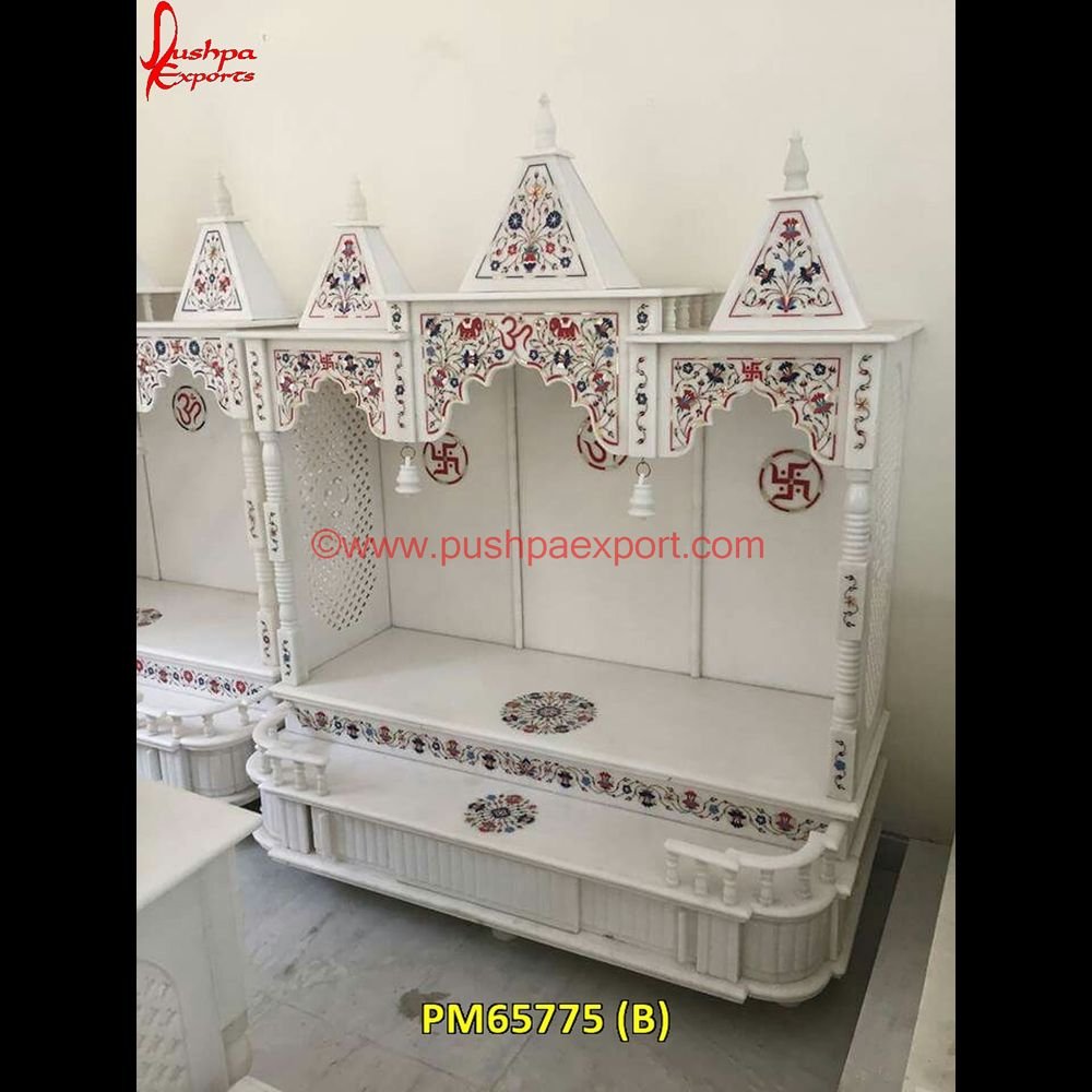 • On the carved Pooja Room Mandir Of White Marble, one can have inlaid mother-of-pearl or semiprecious stonework.