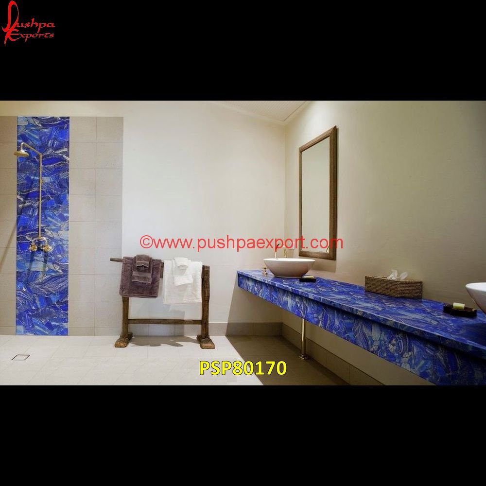 The Lapiz Lazuli Vanity Counter is made to last, offering a highly durable and long-lasting surface, Each Lapiz Lazuli Vanity Counter is unique, with natural stone patterns and variations, ensuring every piece is one-of-a-kind, Some Lapiz Lazuli Vanity Counter include backlighting, which enhances the transparency and beauty of stones like amethyst and agate, The healing properties of the Lapiz Lazuli Vanity Counter promote relaxation, positive energy, and mental clarity, The polished finish of the Lapiz Lazuli Vanity Counter gives it a luxurious, high-end appearance, Lapiz Lazuli Vanity Counter require minimal maintenance to keep them looking their best over time, Stones like amethyst, agate, red carnelian, and petrified wood add both aesthetic appeal and health benefits, improving the energy of the surrounding space.
