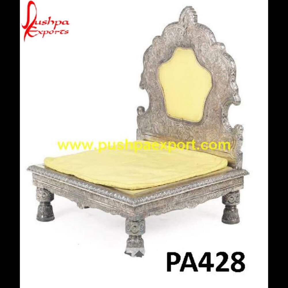 Our Yellow Low Seating Singhasan Chair is quite appealing. The Yellow Low Seating Singhasan Chair we offer are enormously long lasting. The Yellow Low Seating Singhasan Chair that we offer is very comfortable. The Yellow Low Seating Singhasan Chair is entirely hand carved. No machines are used for silver sheet leafing or carving process. The silver sheet used in making of Yellow Low Seating Singhasan Chair is made of 99 percent pure silver. Our Yellow Low Seating Singhasan Chair is completely made from natural raw materials and is all hand crafted. The Yellow Low Seating Singhasan Chair is built of high-quality teak or sag wood and is covered with silver sheet. We can also make it in any other wood as per the buyer’s requirement. White metal sheet, brass sheet, bronze sheet, or wood polish finish can be done, if the buyer prefers a Yellow Low Seating Singhasan Chair in any other finish other than silver finish.