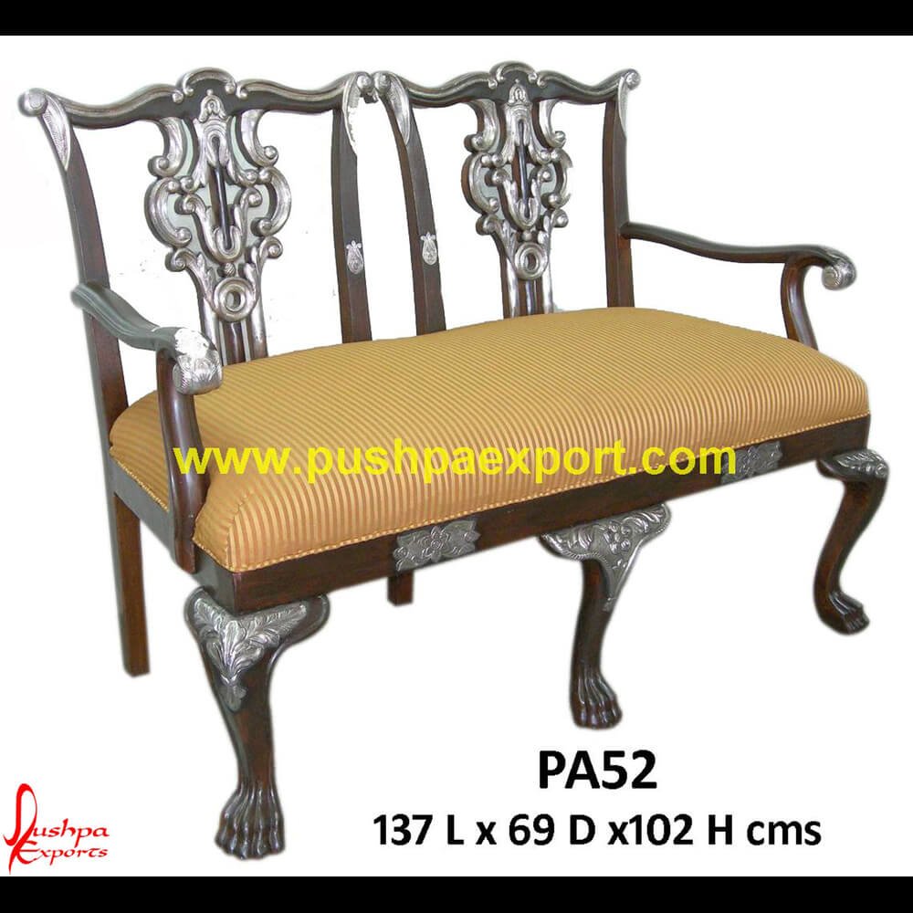 The 2 Seater Silver Sofa with silver sheet coating appears luxurious. The handcrafted 2 Seater Silver Sofa is a masterpiece. Coating of PU and Lacquer is done to protect the shine of 2 Seater Silver Sofa. If a customer does not like a 2 Seater Silver Sofa due to any reason, we also provide the same range of products in white metal, brass, copper and other finishes. A 2 Seater Silver Sofa is made by sticking silver sheet into a sturdy, and high-quality wood structure. The 2 Seater Silver Sofa is available in a variety of styles and sizes and is completely customizable. The 2 Seater Silver Sofa is made of premium quality Teak wood. The 2 Seater Silver Sofa will make your room look exclusive. The 2 Seater Silver Sofa is fully hand-carved from start to finish. Therefore, each piece possesses some uniqueness. Our 2 Seater Silver Sofa can be used in bedroom, living room, hallway, porch and many other places as well.