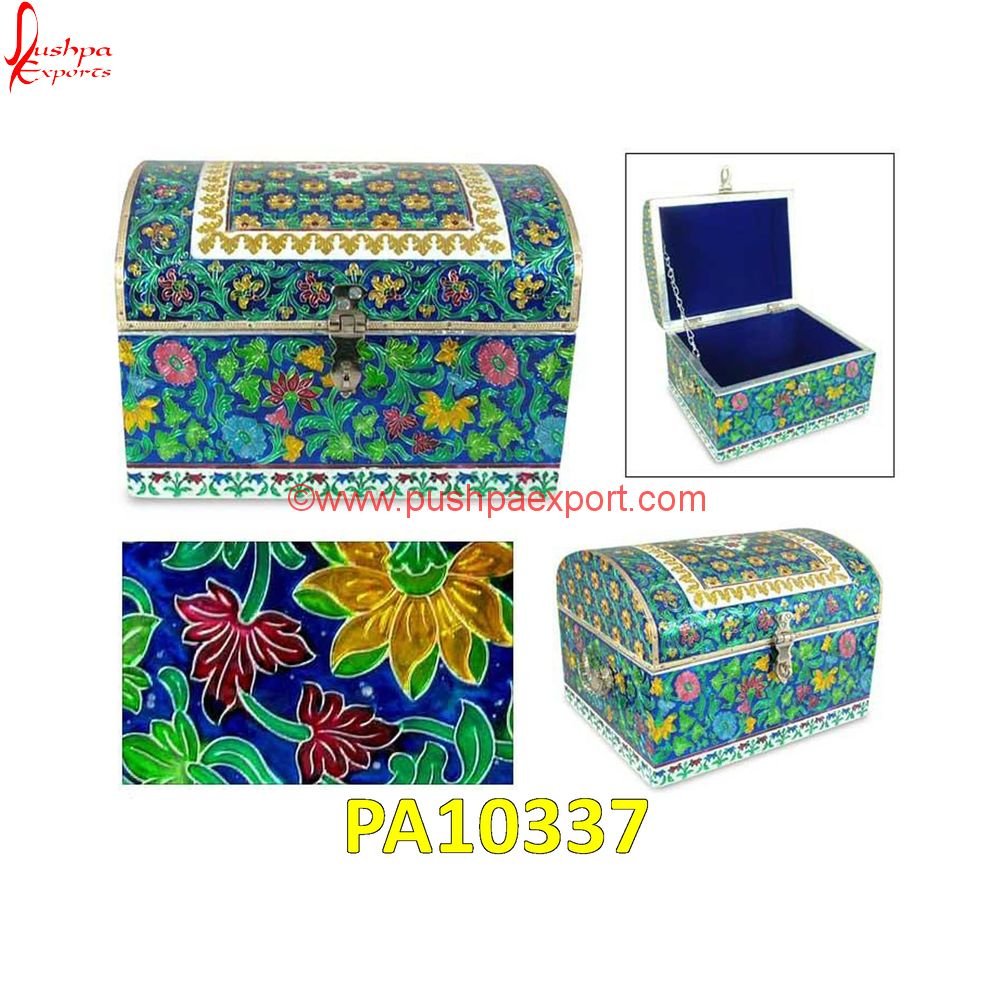 Special Features Of Meenakari Floral Carved White Metal Sandook Box
