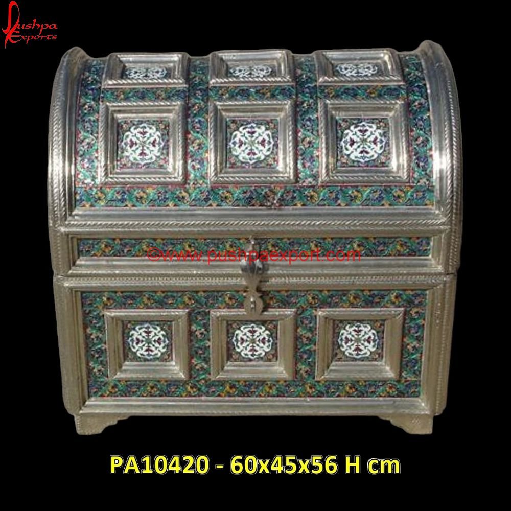 Pushpa Exports, the well-known manufacturer and exporter of white metal handicrafts, with a vision to bring an Indian flair to your home or office decor, produces strong>white metal decorative boxes made of solid hand-carved wooden boxes plated with white metal sheets indented into the detailed carvings. The white metal chest or white metal trunk gets the antique look from a kind of antique stain used to polish the white metal decorative boxes.