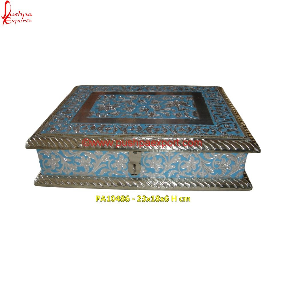 Pushpa Exports, the well-known manufacturer and exporter of white metal handicrafts, with a vision to bring an Indian flair to your home or office decor, produces strong>white metal decorative boxes made of solid hand-carved wooden boxes plated with white metal sheets indented into the detailed carvings. The white metal chest or white metal trunk gets the antique look from a kind of antique stain used to polish the white metal decorative boxes.