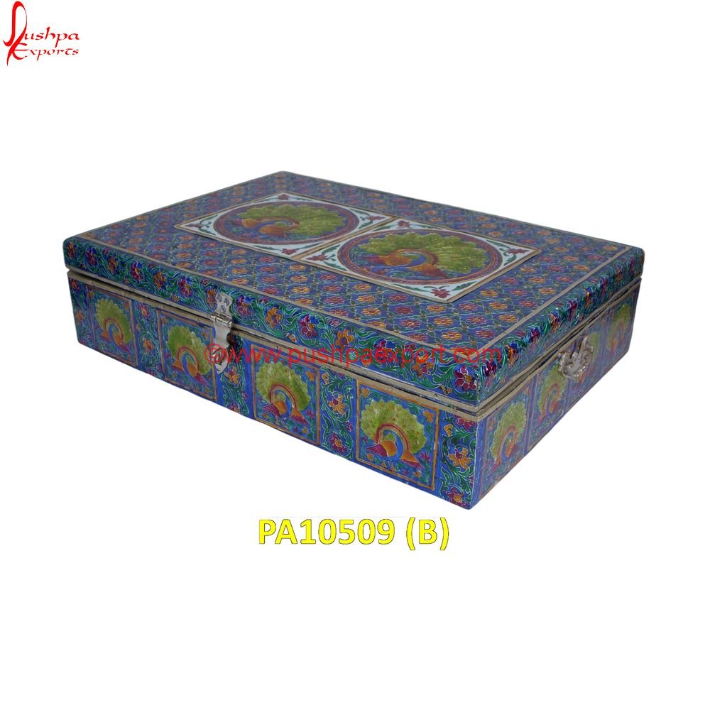 Pushpa Exports, the well-known manufacturer and exporter of white metal handicrafts, with a vision to bring an Indian flair to your home or office decor, produces strong>white metal decorative boxes made of solid hand-carved wooden boxes plated with white metal sheets indented into the detailed carvings. The white metal chest or white metal trunk gets the antique look from a kind of antique stain used to polish the white metal decorative boxes.