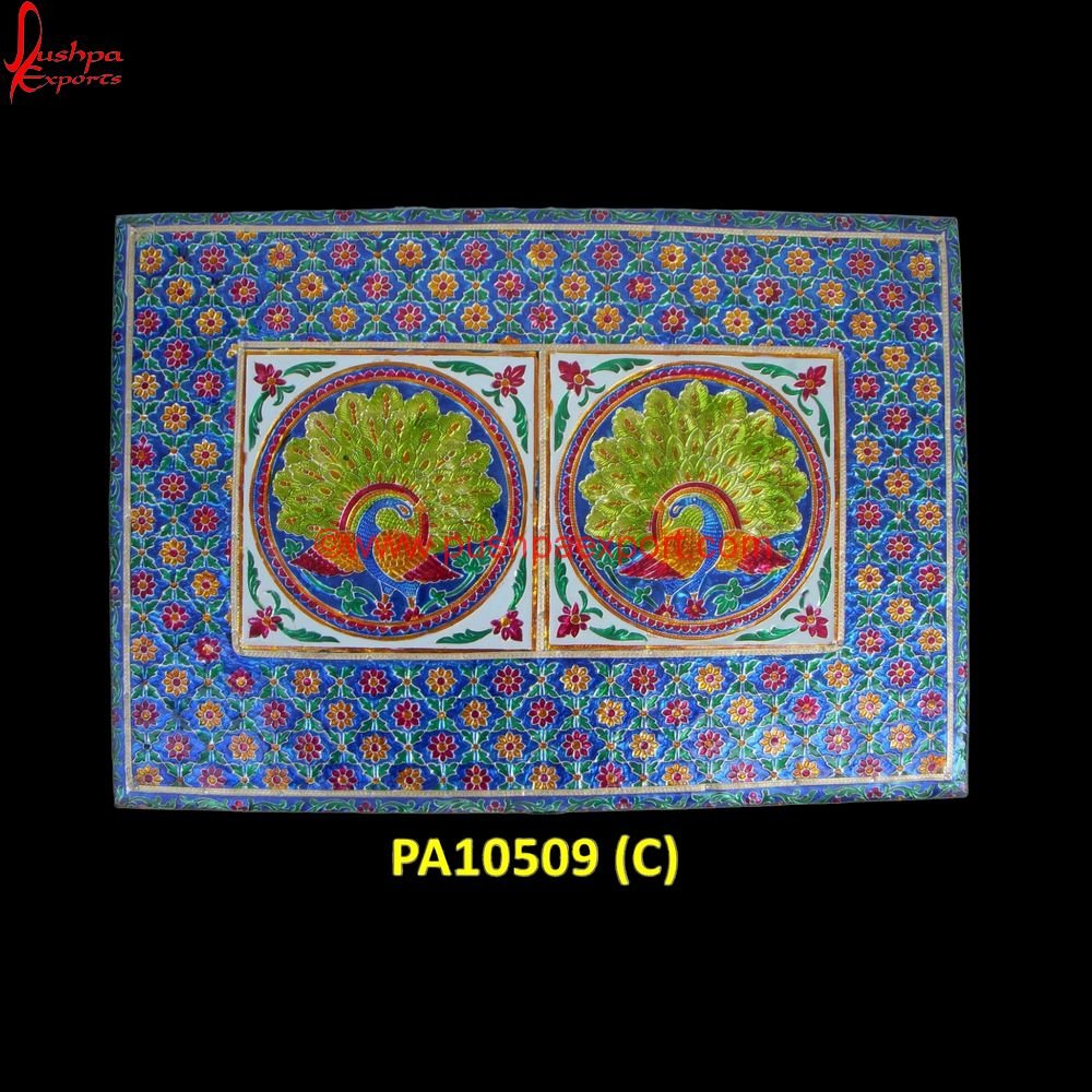 The White Metal Multipurpose Jewellery Box with Peacock Embossing is made of premium-quality Teak wood. The wooden frame of the White Metal Multipurpose Jewellery Box with Peacock Embossing is plated with an alloy of nickel, zinc, and copper. The White Metal Multipurpose Jewellery Box with Peacock Embossing will make your room look exclusive. Though it has been coated with PU/lacquer to make its shine last for years, if need be, the White Metal Multipurpose Jewellery Box with Peacock Embossing can be polished. German silver or white metal does not tarnish. The White Metal Multipurpose Jewellery Box with Peacock Embossing is fully hand-carved from start to finish. Therefore, each piece possesses some uniqueness. Anything from the size to the design of the White Metal Multipurpose Jewellery Box with Peacock Embossing is customizable. The raw materials of the White Metal Multipurpose Jewellery Box with Peacock Embossing can be altered as per the customers’ requirements. The White Metal Multipurpose Jewellery Box with Peacock Embossing can also be plated with silver, brass, bronze, or copper sheet, or it can simply be polished according to the customers’ choice. Our White Metal Multipurpose Jewellery Box with Peacock Embossing can be used in temples, homes, offices, and many other places as well.