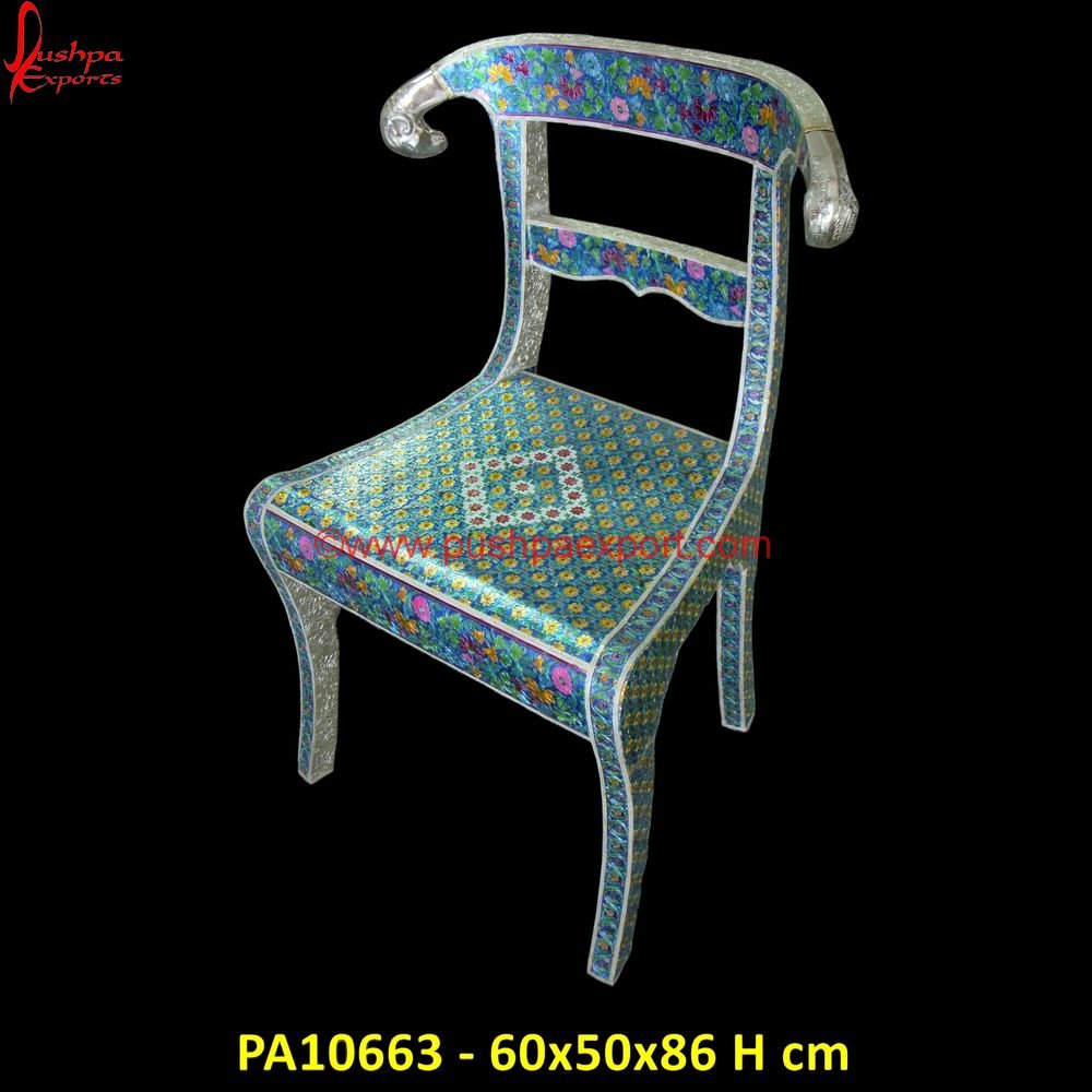 • Our Meenakari Rams Head Chair will find a place in any room of your home, be it as a silver accent chair, silver vanity chair or a white metal dining chair.