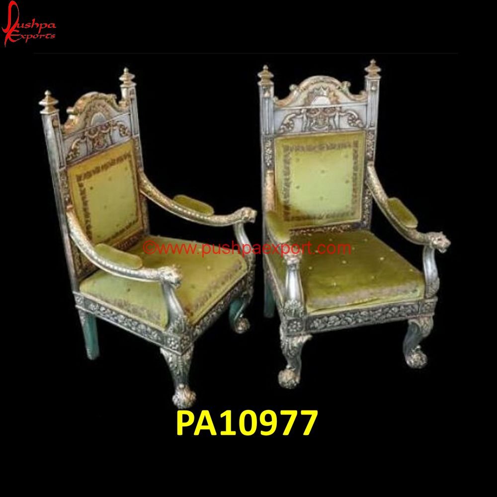 The Silver Carved Lion Head Arms Chair is made of supreme-quality Teak wood. The Silver Carved Lion Head Arms Chair is plated with an alloy of nickel, zinc, and copper. Besides making your room look exclusive, the Silver Carved Lion Head Arms Chair will also keep you cool due to the cooling nature of white metal. Though it has been coated with PU/lacquer to make its shine last for years, if need be, the Silver Carved Lion Head Arms Chair can be polished. The Silver Carved Lion Head Arms Chair is fully hand-carved from start to finish. Therefore, each piece possesses some uniqueness. Anything from the size to the design of the Silver Carved Lion Head Arms Chair is customizable. The raw materials used in the making of the Silver Carved Lion Head Arms Chair can be altered as per the customers’ requirements. The Silver Carved Lion Head Arms Chair can also be plated with silver sheet, brass sheet, bronze sheet, or copper sheet, or it can simply be polished according to the customers’ choice. The Silver Carved Lion Head Arms Chair is upholstered with high quality foam sheets and fabrics such as velvet, corduroy, and raw silk, depending on the customers’ desire. Our Silver Carved Lion Head Arms Chair will find a place in any room of your home, be it as a silver accent chair, silver vanity chair or a white metal dining chair.