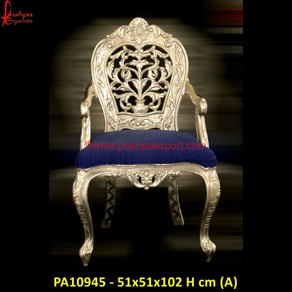 Take a seat in style on our white metal chairs! These hand-carved wooden chairs serve as the perfect substitute for silver chairs. A piece that comes in all shapes and sizes, the silver accent chair will marry well with all decor styles, be it antique or contemporary. The white metal dining room chairs and silver wing back chairs will elevate a living space to a superior degree, giving an exclusive-looking interior.