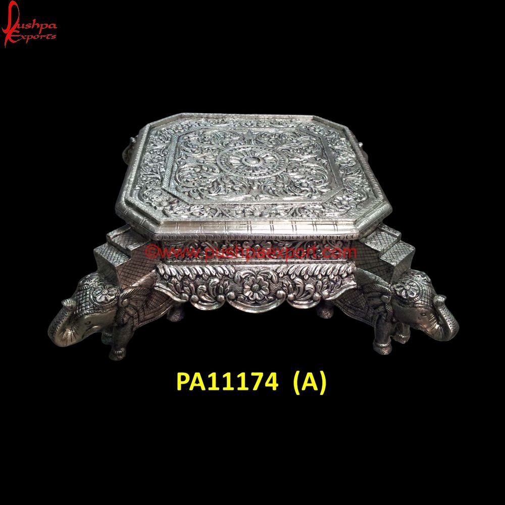 Special Features Of Traditional Elephant German Silver Pooja Stool