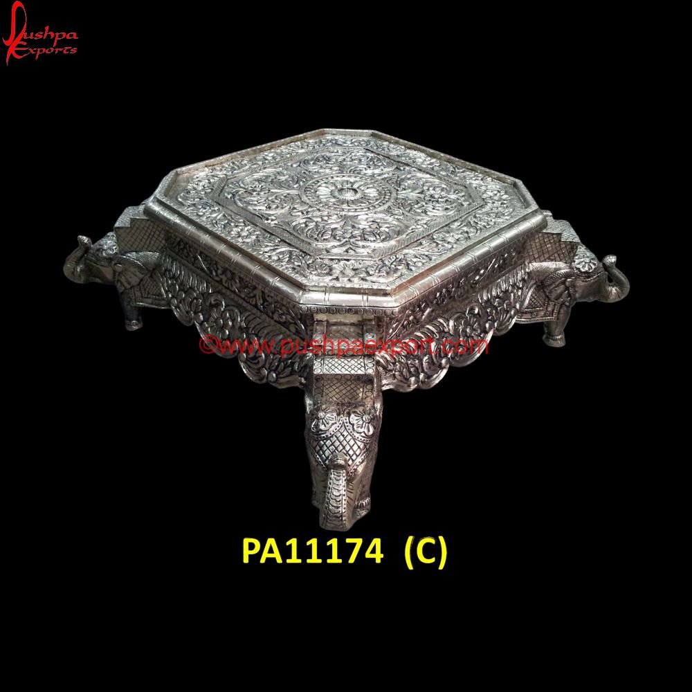 • The white metal chowki can also be plated with silver, brass, bronze, or copper sheet, or it can simply be polished according to the customers’ choice.