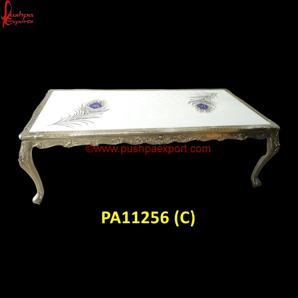 Special Features Of White Metal Dining Table with Peacock Feather Embossing