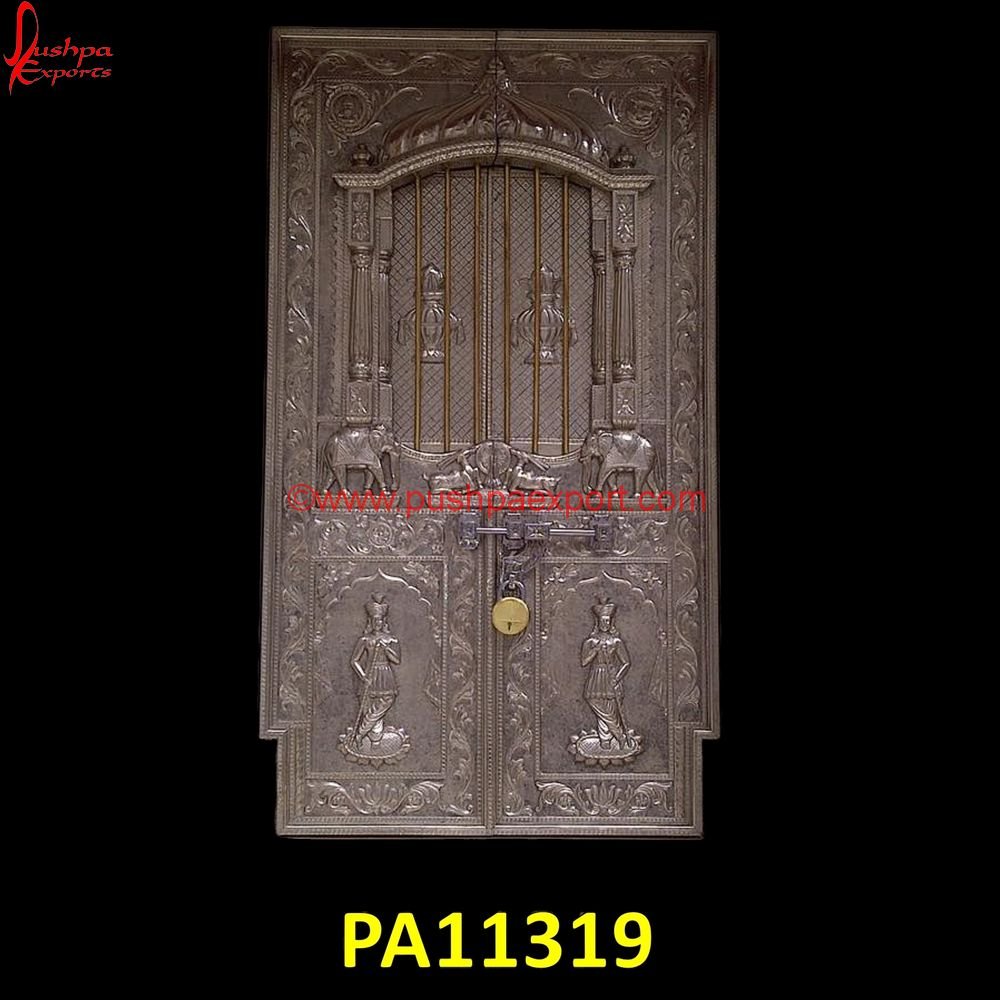 • The Hand Carved Door For Mandir with white metal sheet coating appears luxurious.