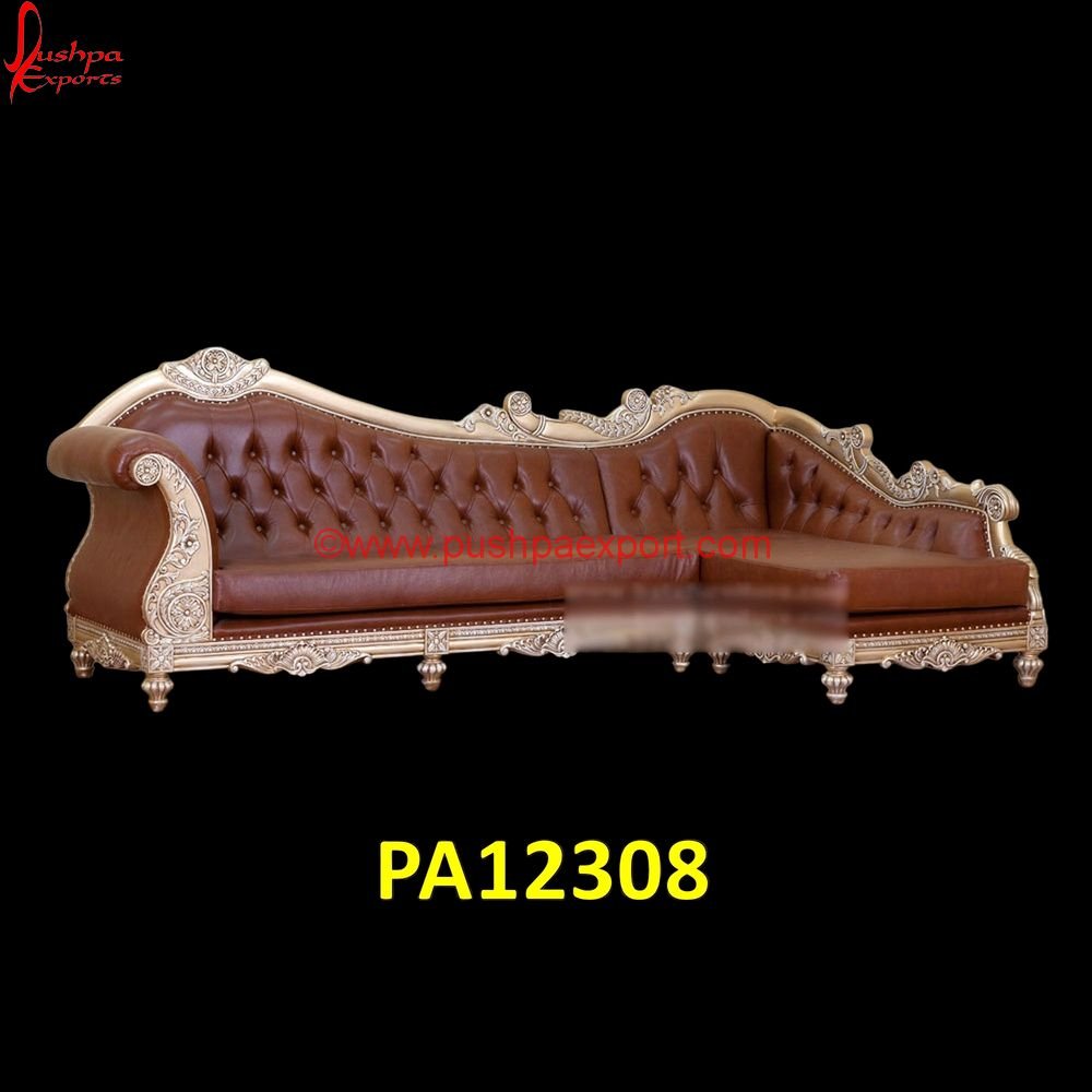 The base of the silver chaise sofais made of teak wood. The wooden structure is hand carved, which requires a lot of hard work to be done by the craftsmen. The white metal sheet is pasted over the teak wood carving sofa sets, and then it is inserted into the wooden carvings very finely so that one can see the minute details of carving by bringing out its uniqueness. The large silver sofahas a very high quality soft cushioning material which makes it comfortable to sit on.