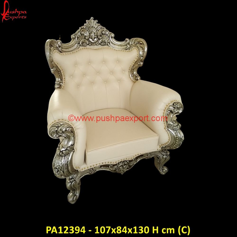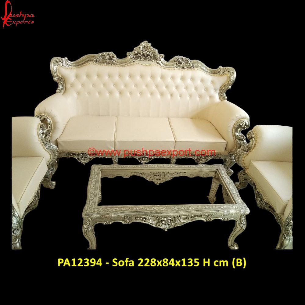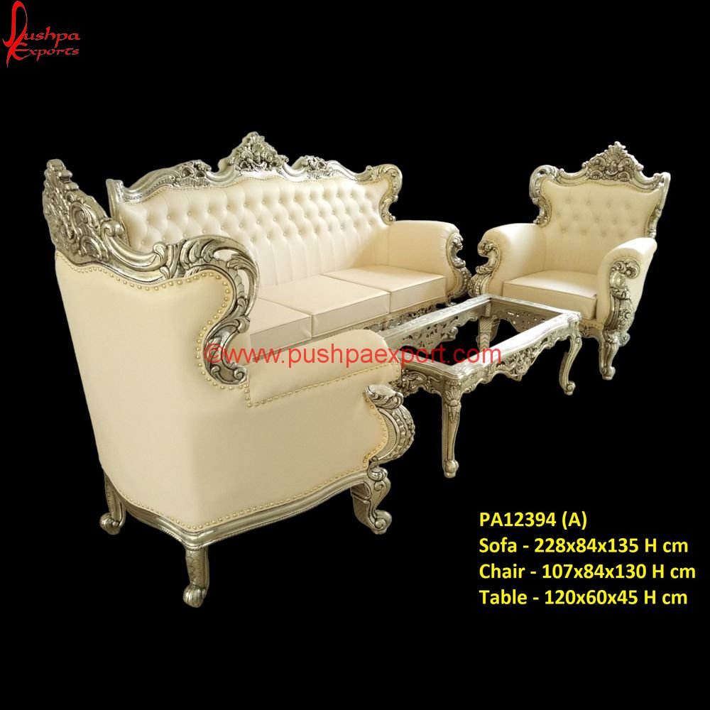 Explore the full range of best white metal furniture in Udaipur brought to you by Pushpa Exports. From our luxurious collection of silver living room furniture, the elaborately hand-carved wooden sofa set is coated with white metal sheet and gives a vintage look to your drawing room. Our Victorian carved sofa is an exclusive feature rich product fully handcrafted by our highly skilled artisans.