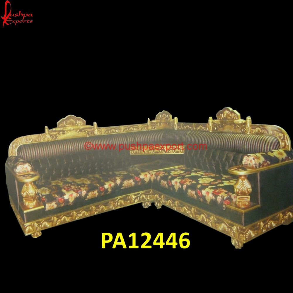 • The handcrafted L Shaped Brass Metal Carved Sofa is amasterpiece.
