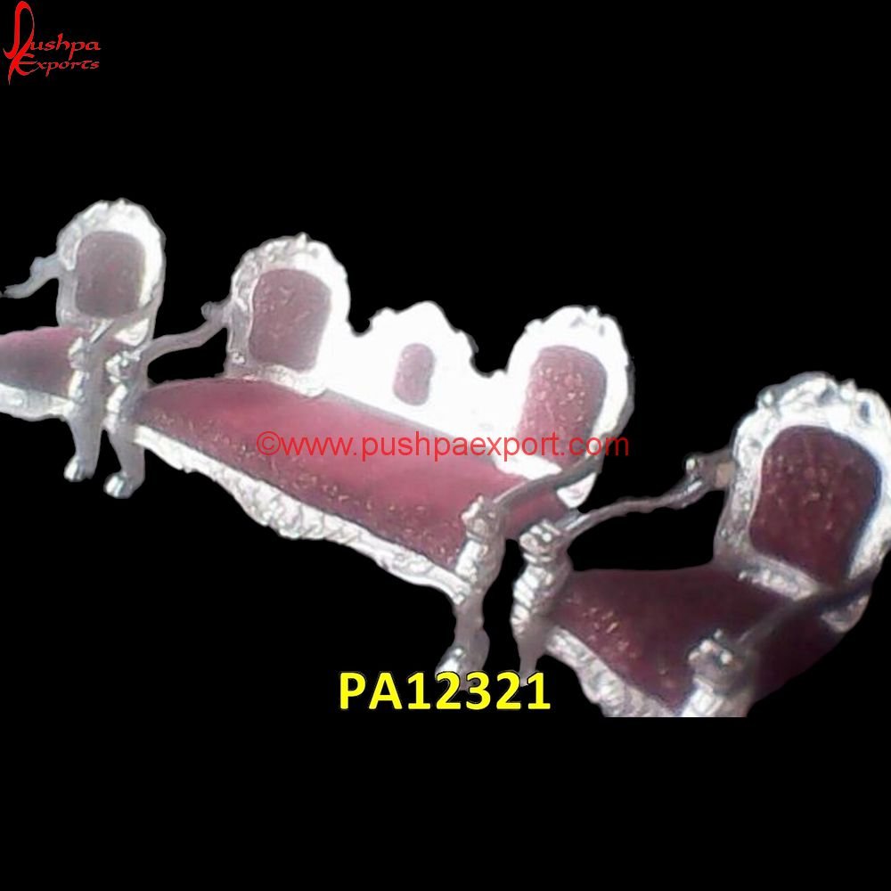 Explore the full range of best white metal furniture in Udaipur brought to you by Pushpa Exports. From our luxurious collection of silver living room furniture, the elaborately hand-carved wooden sofa set is coated with white metal sheet and gives a vintage look to your drawing room. Our Victorian carved sofa is an exclusive feature rich product fully handcrafted by our highly skilled artisans.