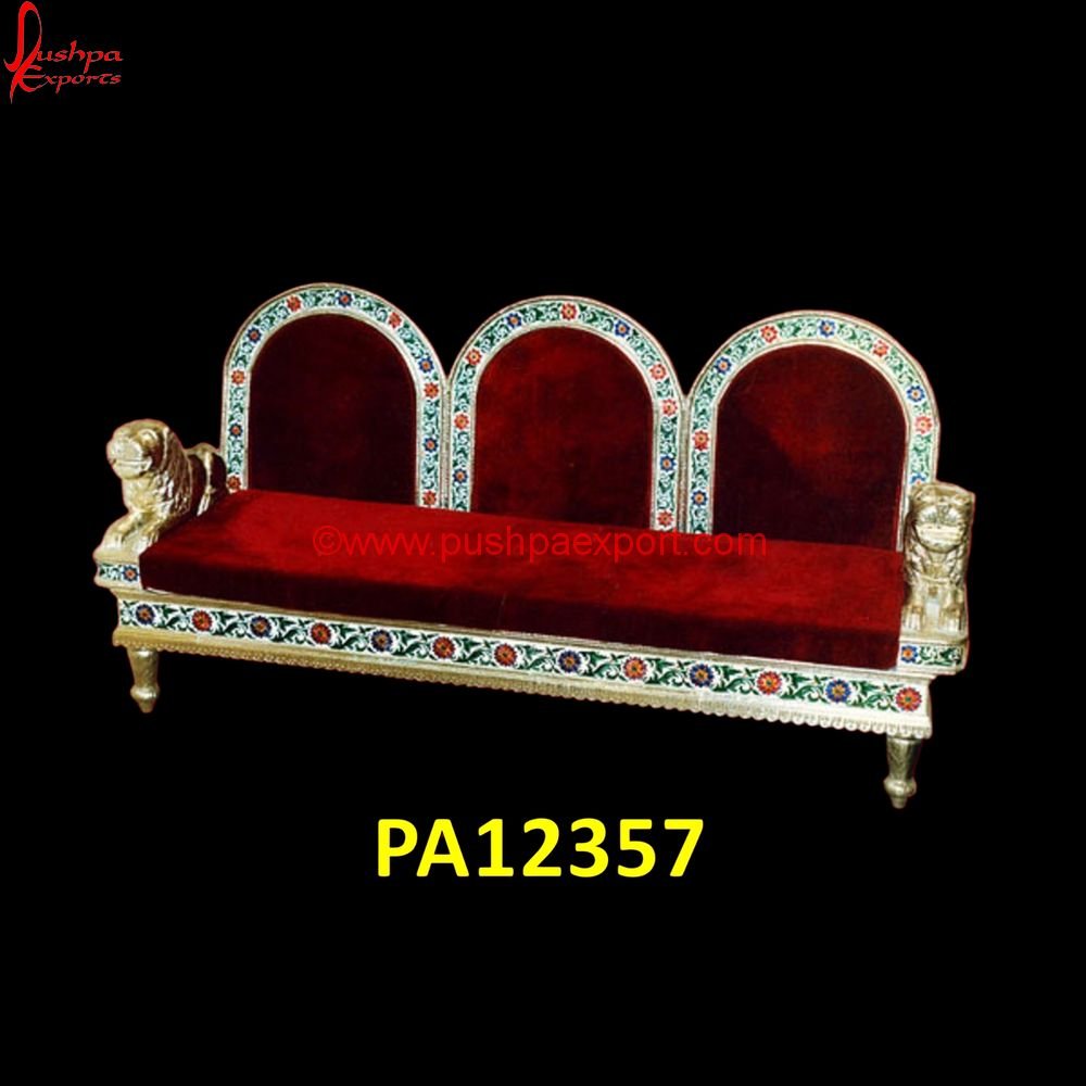 The metalsofa is often used in functions for seating in Indian weddings. The antique wood carved couchis available in many designs, which makes them look unique and stylish. The royal carving sofa is fashioned out of solid premium-quality Teak wood. The carved couch is then plated with white metal sheet carefully indented into the edges so that the carvings are clearly visible. Then the silver 3-seater sofa is cushioned and upholstery work is done. The fabric used to upholster the teak wood carving sofa sets can be changed as per your requirement.