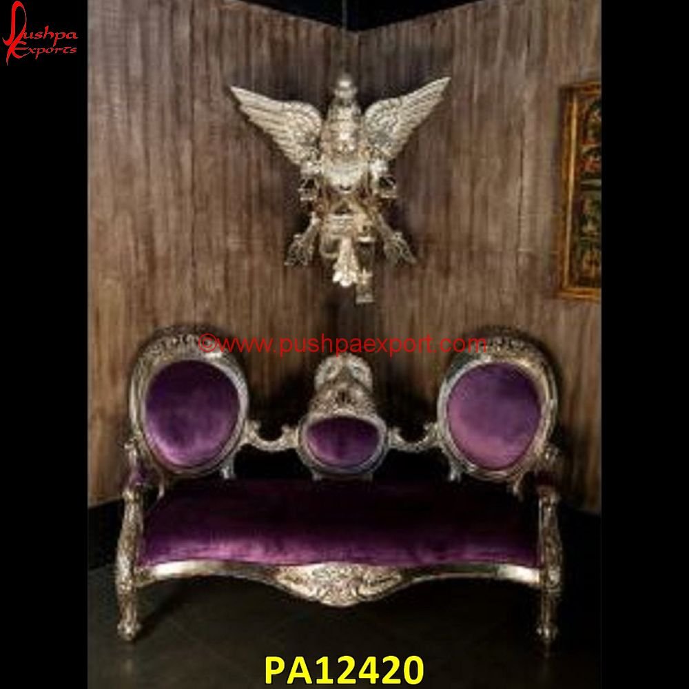 The White Metal Carved Sofa with Purple Velvet with white metal sheet coating appears luxurious. The handcrafted White Metal Carved Sofa with Purple Velvet is amasterpiece. Coating of PU and Lacquer is done to protect the shine of White Metal Carved Sofa with Purple Velvet. If a customer does not like a White Metal Carved Sofa with Purple Velvet due to any reason, we also provide the same range of products in silver, brass, copper and other finishes. A White Metal Carved Sofa with Purple Velvetis made by sticking white metal sheet into a sturdy, and high-quality wood structure. The White Metal Carved Sofa with Purple Velvetis available in a variety of styles and sizes and is completely customizable. The White Metal Carved Sofa with Purple Velvet is made of premium quality Teak wood. The White Metal Carved Sofa with Purple Velvet will make your room look exclusive. The White Metal Carved Sofa with Purple Velvet is fully hand-carved from start to finish. Therefore, each piece possesses some uniqueness. Our White Metal Carved Sofa with Purple Velvet can be used in bedroom, living room, hallway, porch and many other places as well.